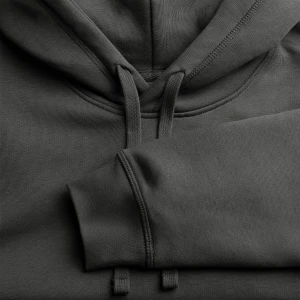 • Gerade geschnittener Unisex Hoodie mit eingesetzten Ärmeln und Kapuze aus gleichem Material